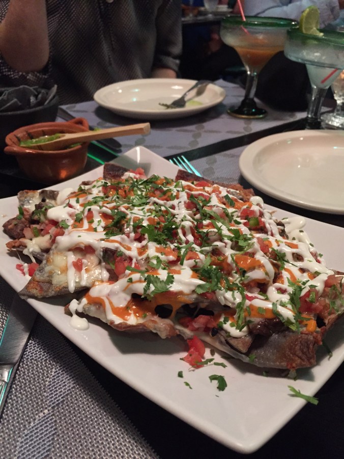 Despite some serious food consumption at Blue Corn, with a taco course at Prima Pizza, we were able to order another round of margaritas, and these nachos.